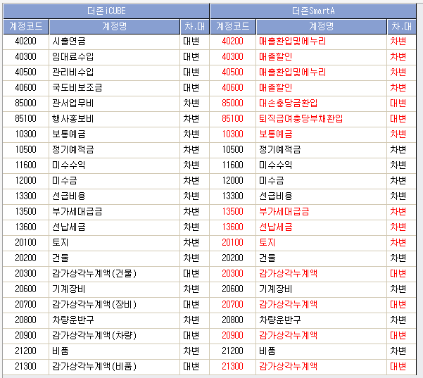 icube에 계정과목과 스마트 A 계정과목 맞는지 확인!
